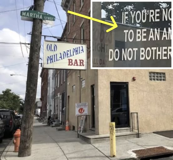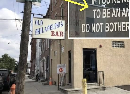 While Victor Fiorillo went out for a drink at night, he decided to go to the Old Philadelphia Bar in the City of Brotherly Love. He wanted a beer and some good company, but when he saw the sign etched on the window, it gave him pause. Nevertheless, he went inside and voted with his dollars by buying a beer, and that’s when a man spoke up so the whole bar could hear him.